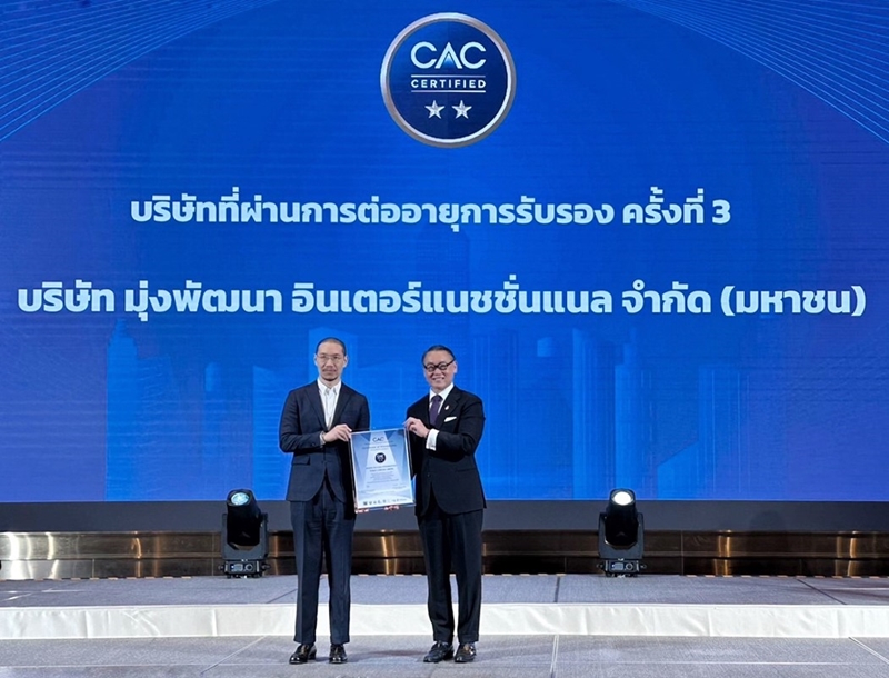 Mr. Methin Lersumitkul, CEO of MOONG Pattana International Public Company Limited, was honored to receive the Certificate of Membership in the Thai Private Sector Collective Action Against Corruption (CAC) for the third consecutive term