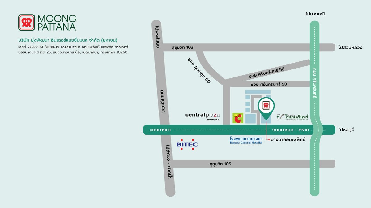 เลขที่ 2/97-104 ชั้น 18-19 อาคารบางนา คอมเพล็กซ์ ออฟฟิศ ทาวเวอร์ ซอยบางนา-ตราด 25, แขวงบางนาเหนือ, เขตบางนา, กรุงเทพฯ 10260เวลาทำการ