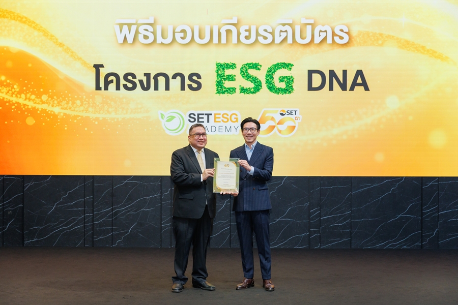 นายสุธีร์ เลอสุมิตรกุล กรรมการ เข้ารับมอบเกียรติบัตรในโครงการ ESG DNA จากตลาดหลักทรัพย์แห่งประเทศไทย โดยมอบให้ไว้เป็นที่ระลึกแห่งความร่วมมืออันทรงคุณค่าระหว่างบริษัทและตลาดหลักทรัพย์แห่งประเทศไทยในการให้ความสำคัญและส่งเสริมองค์ความรู้ด้าน ESG ภายในองค์กรอย่างต่อเนื่อง เมื่อวันที่ 26 สิงหาคม 2568 ณ หอประชุมศุกรีย์ แก้วเจริญ อาคารตลาดหลักทรัพย์ฯ