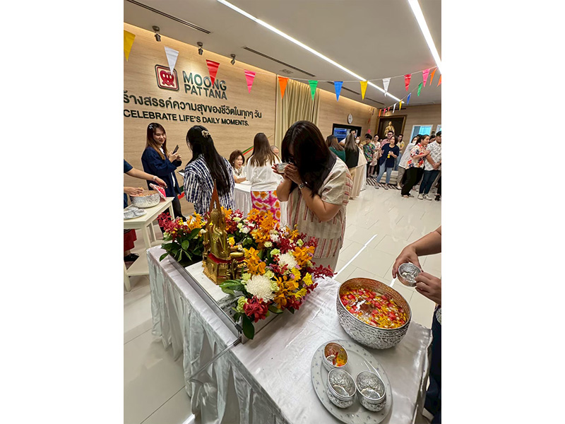 ชาวมุ่งได้ร่วมกิจกรรมการสรงน้ำพระ และรดน้ำขอพรผู้ใหญ่ ได้อวยพรให้พนักงานก่อนเดินทางในช่วงเทศกาลสงกรานต์ และเพิ่มความสดชื่นใจด้วยไอศกรีมและขนมไทยปิดท้ายกิจกรรม