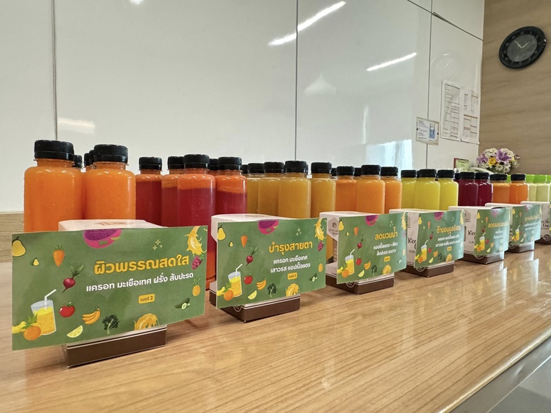 และเราได้เตรียม น้ำผลไม้สดชื่น ๆ ให้พนักงานทุกคนได้ดื่มเติมพลัง เติมวิตามิน เพิ่มรอยยิ้มในวันศุกร์